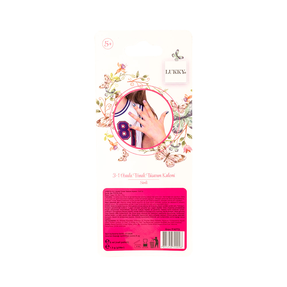 LUKKY makyajını sadece suyla çıkarmak kolaydır ve oje, güçlü kimyasallara ihtiyaç duymadan soyularak çıkarılabilir.