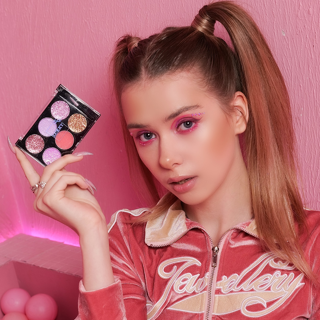 Çocuklar için göz farı: Lila, pembe, fuşya, mor, açık pembe, altın sarısı 6 farklı renk bulunmaktadır.