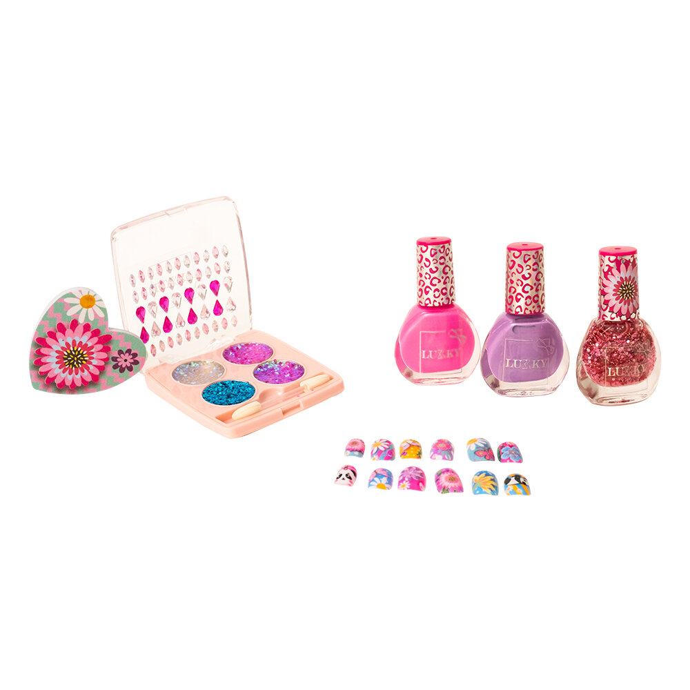 Lukky manikür seti ile kızlar güzel ve parlak tırnaklar yaratabilir ve far paleti ile ışıltılı gözlere sahip olabilir.