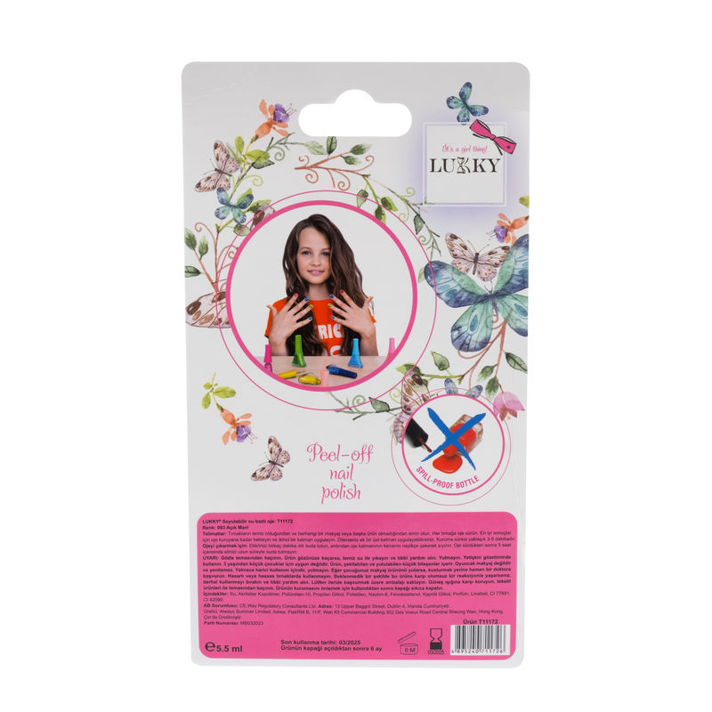 LUKKY makyajını sadece suyla çıkarmak kolaydır ve oje, güçlü kimyasallara ihtiyaç duymadan soyularak çıkarılabilir.
