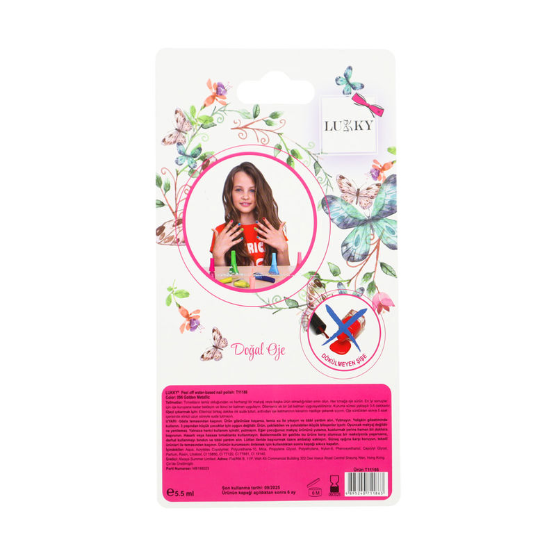 LUKKY makyajını sadece suyla çıkarmak kolaydır ve oje, güçlü kimyasallara ihtiyaç duymadan soyularak çıkarılabilir.