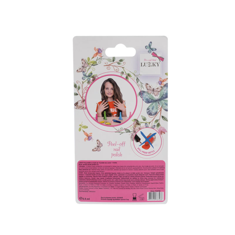 LUKKY makyajını sadece suyla çıkarmak kolaydır ve oje, güçlü kimyasallara ihtiyaç duymadan soyularak çıkarılabilir.