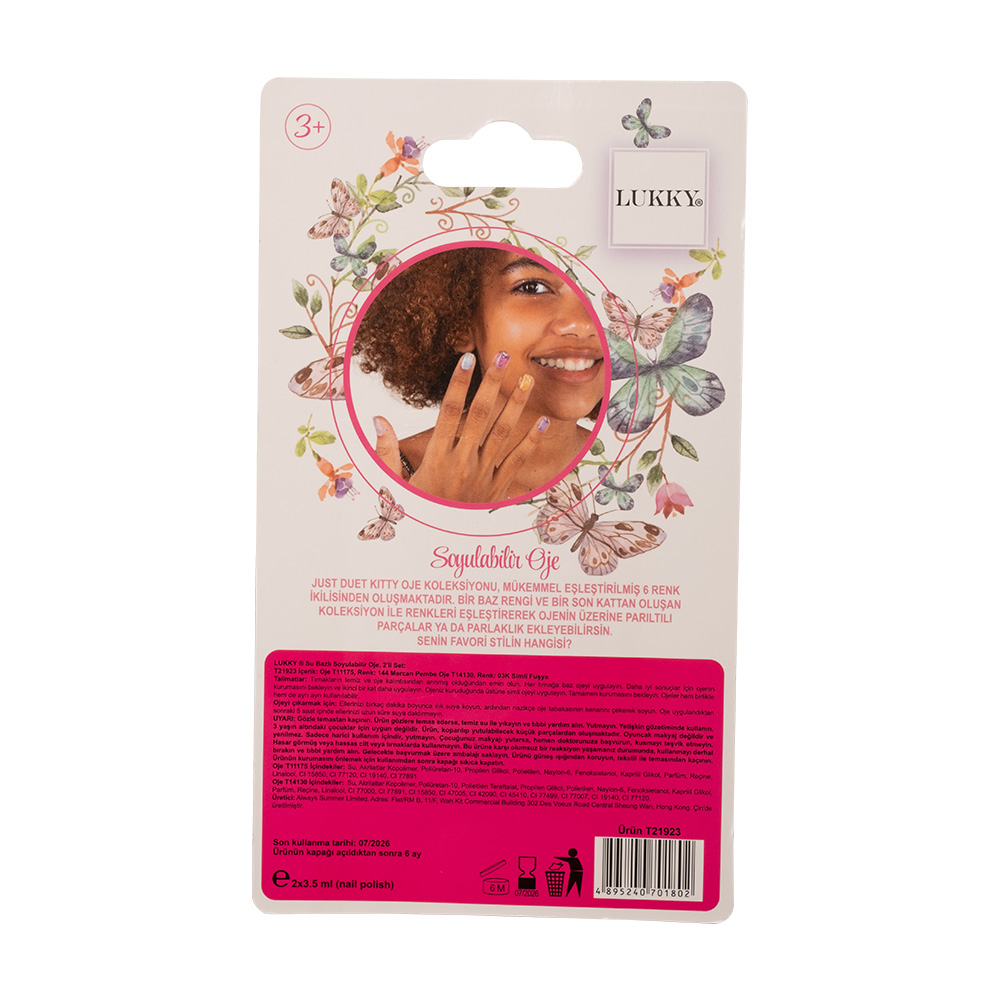 LUKKY makyajını sadece suyla çıkarmak kolaydır ve oje, güçlü kimyasallara ihtiyaç duymadan soyularak çıkarılabilir.