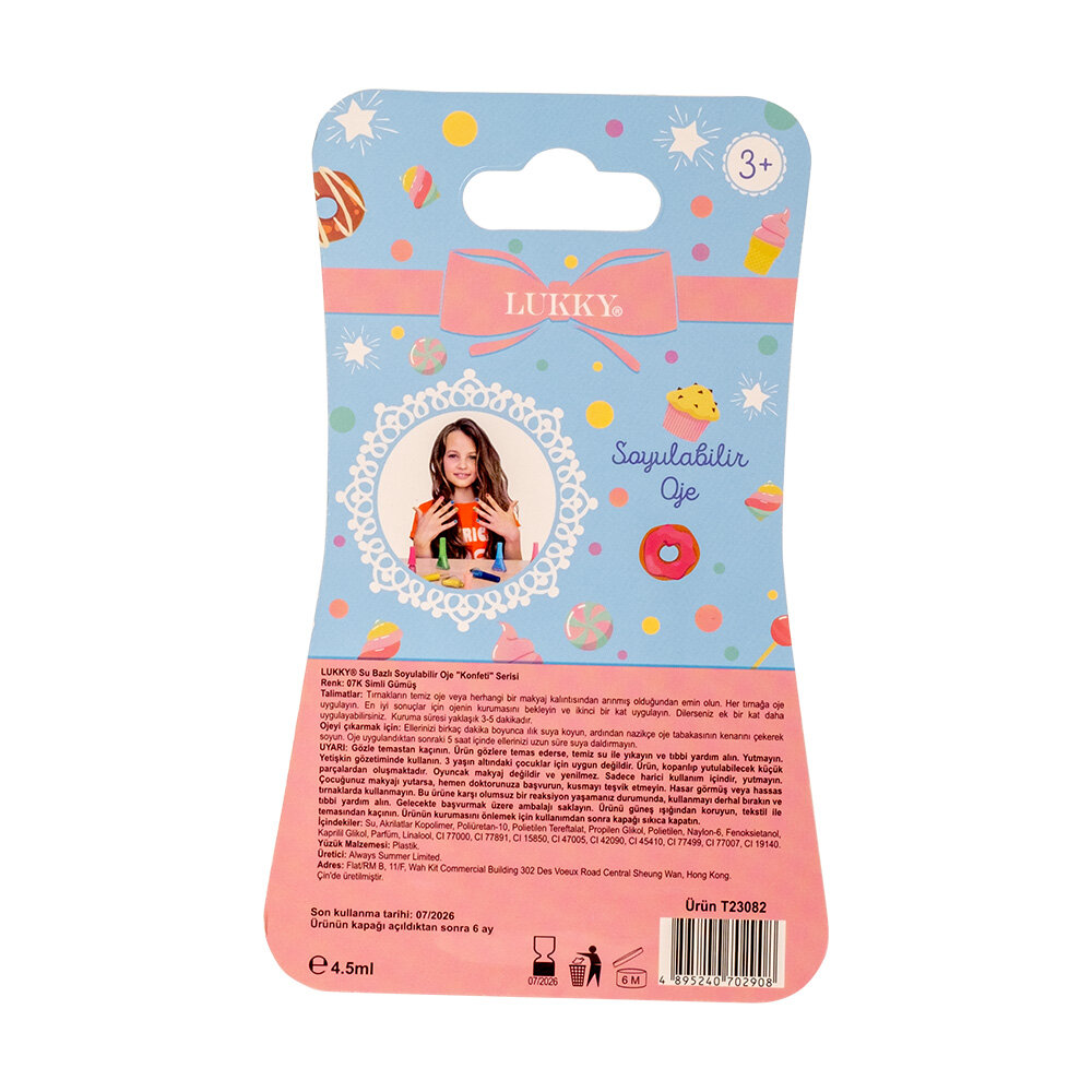 LUKKY makyajını sadece suyla çıkarmak kolaydır ve oje, güçlü kimyasallara ihtiyaç duymadan soyularak çıkarılabilir.