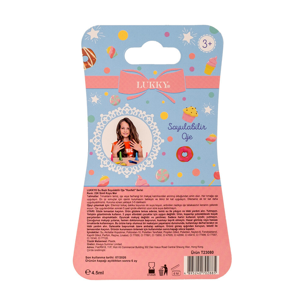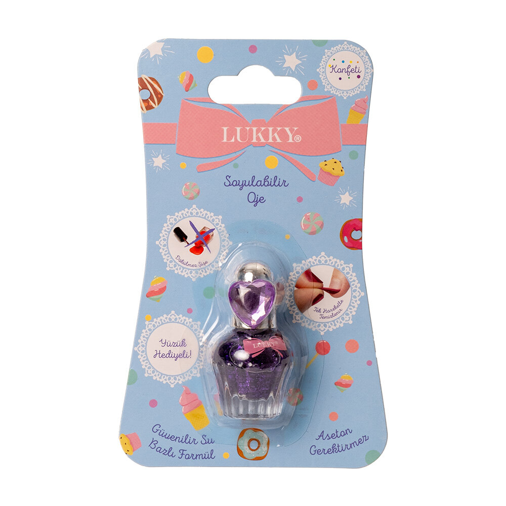 LUKKY makyajını sadece suyla çıkarmak kolaydır ve oje, güçlü kimyasallara ihtiyaç duymadan soyularak çıkarılabilir.