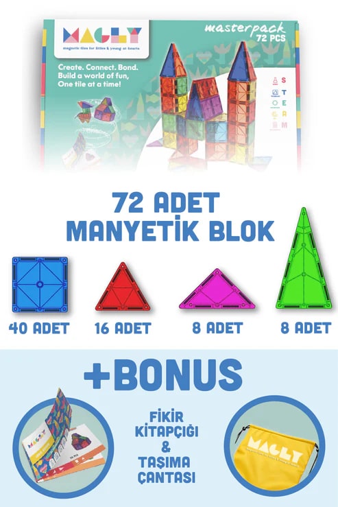 Çocuklar bu renkli ve güvenli manyetik bloklarla kendi dünyalarını inşa ederken eğlenmenin tadını çıkaracak.