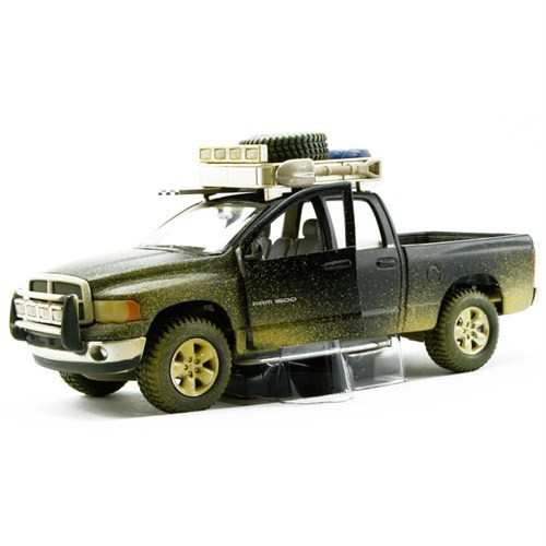 Maisto 2002 Dodge Ram Quad Cam 1:24 Dirt Riders, metal gövde ve plastik parçalardan üretilmiştir.