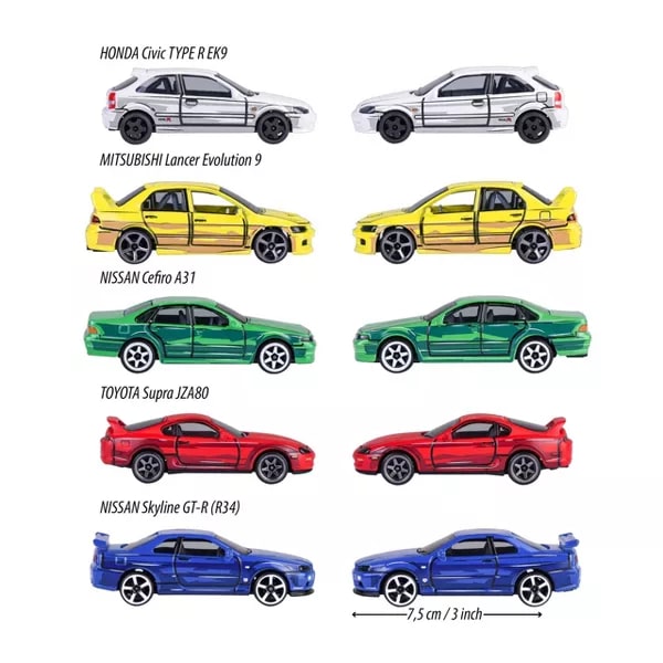 Dahil Edilen Modeller: Nissan Cefiro 31, Nissan Skyline GT-R (R34), Toyota Supra JZA80, Mitsubishi Lancer Evolution 9 ve Honda Civic Type R EK9.