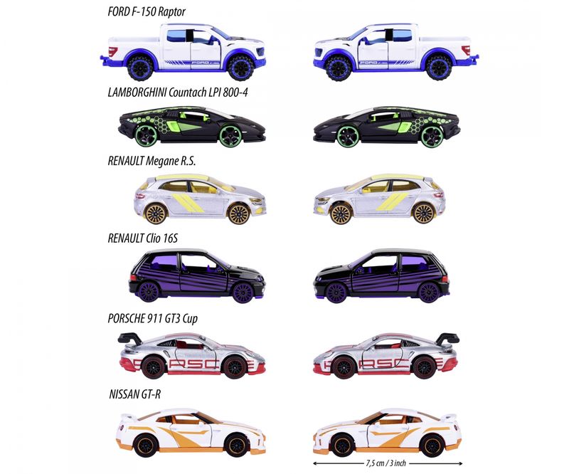 Majorette, tümü otomotiv endüstrisinden resmi lisanslara sahip gerçekçi araç modelleri ve uzun ömür sağlamak için birinci sınıf metal tasarımlar konusunda uzmanlaşmıştır.