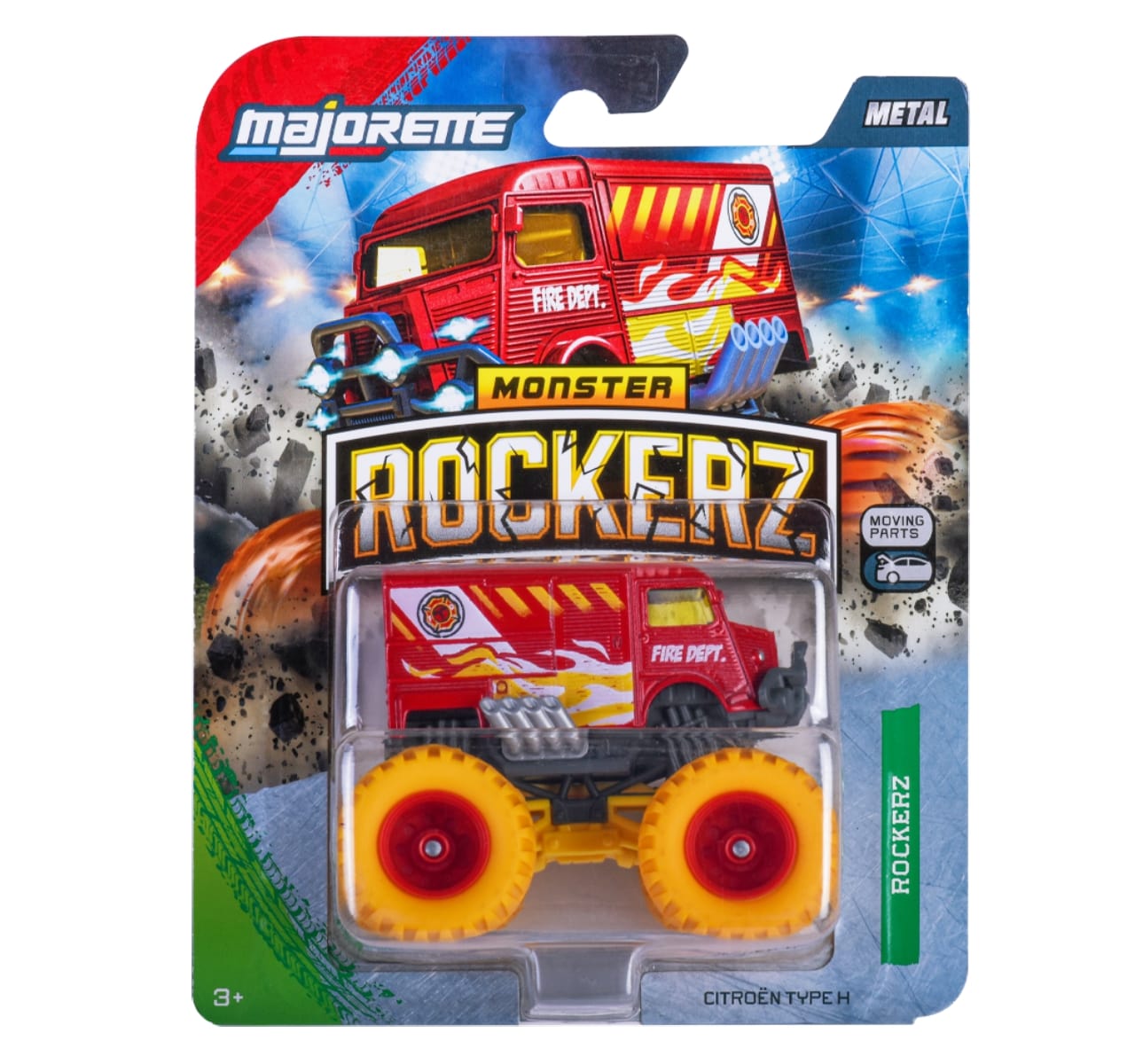 Majorette Monster Rockerz Koleksiyonunda, VW, Ford ve Toyota'nın popüler modelleri, büyük kauçuk lastikler ve yüksek kaliteli süspansiyon