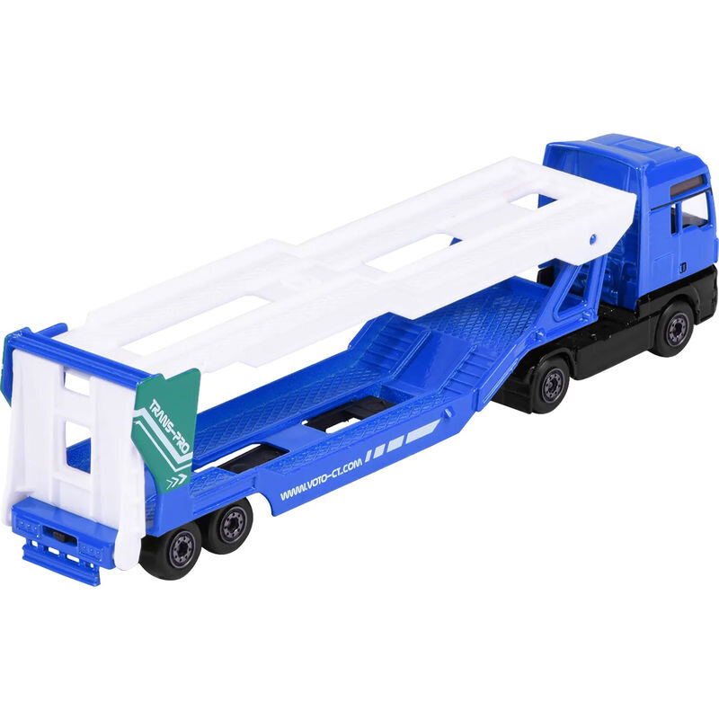 8 farklı Majorette taşıyıcısı ile belden kırma kamyonlar ve tırlar 20 cm uzunluk ve çeşitli farklı yüklerle gerçek büyüklüğü gösterir.
