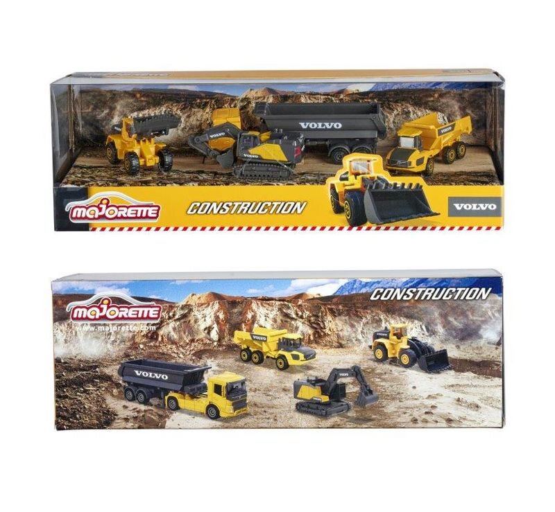 Ekskavatör, dozer, damperli kamyon, ve tır içermektedir. Birinci sınıf ve özgün tasarımları sayesinde, Volvo İnşaat serisinden bu 4 araçlık set her yaştan araç tutkunu için idealdir. Hareketli parçaları sayesinde birinci sınıf inşaat araçları, kum kazmak ve taşımak için kum havuzu oyuncağı olarak da kullanılabilir.
