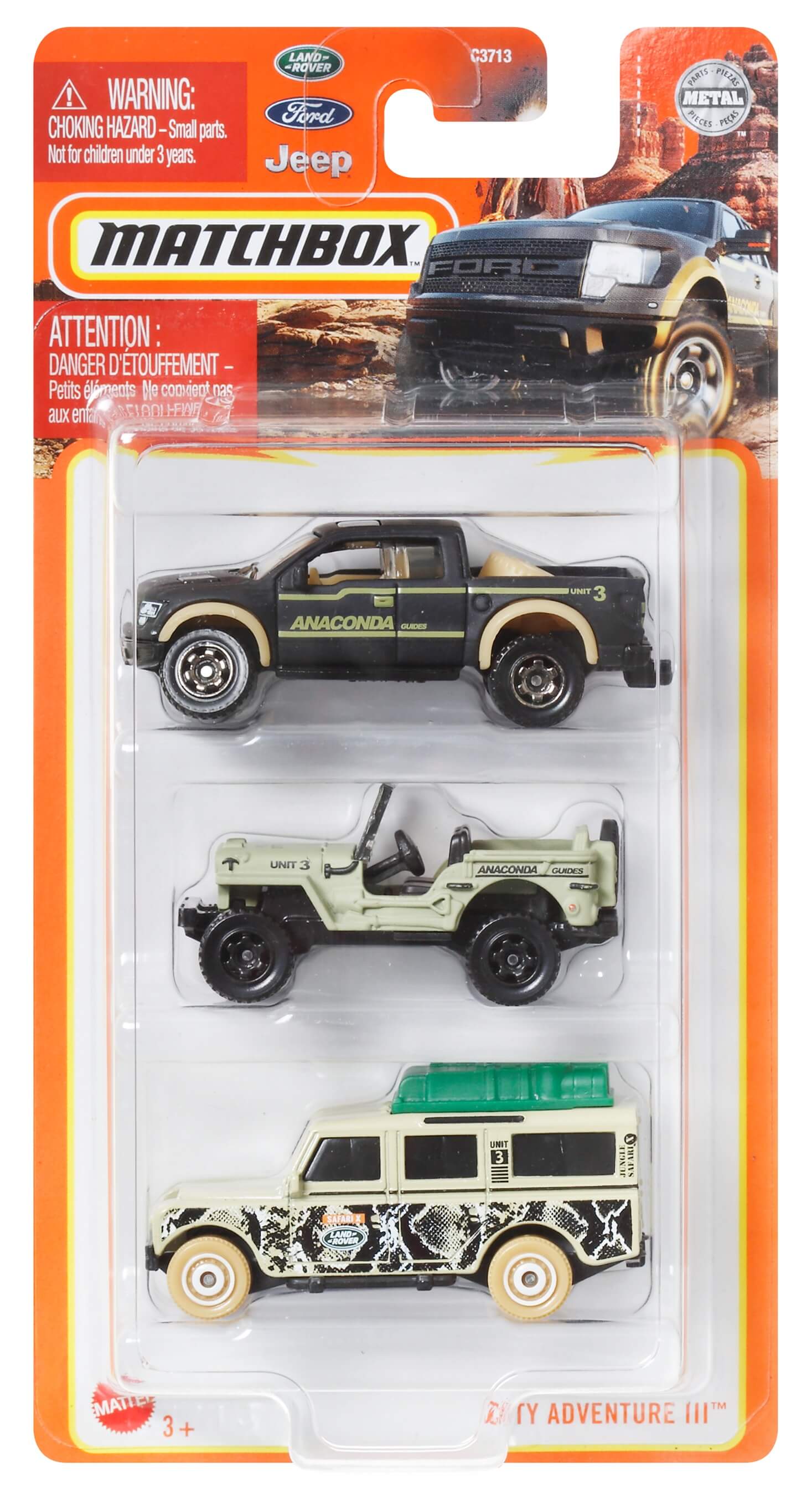 Şehir, kurtarma, inşaat ve macera temalı 3 Matchbox aracı bu