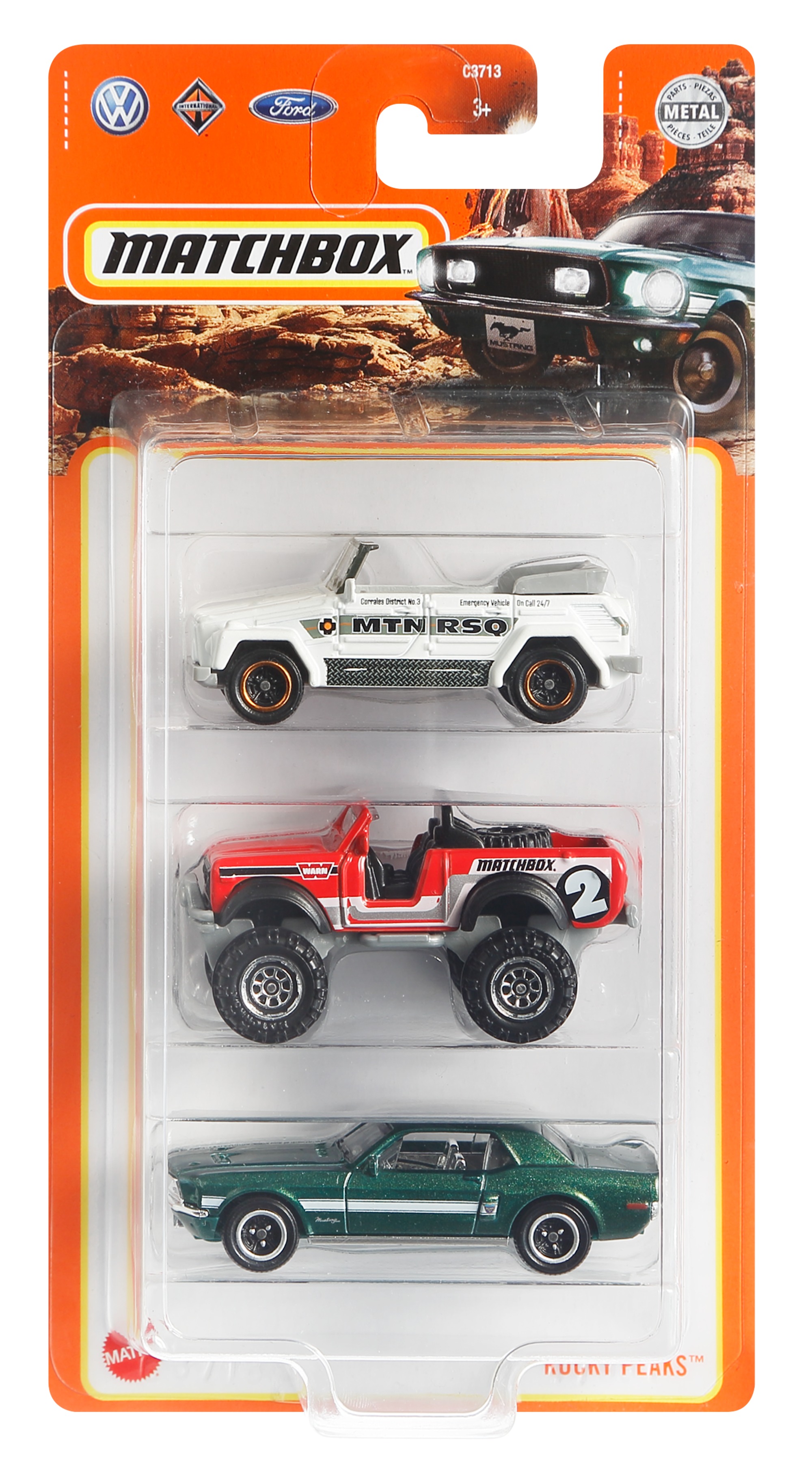 Şehir, kurtarma, inşaat ve macera temalı 3 Matchbox aracı bu sette!