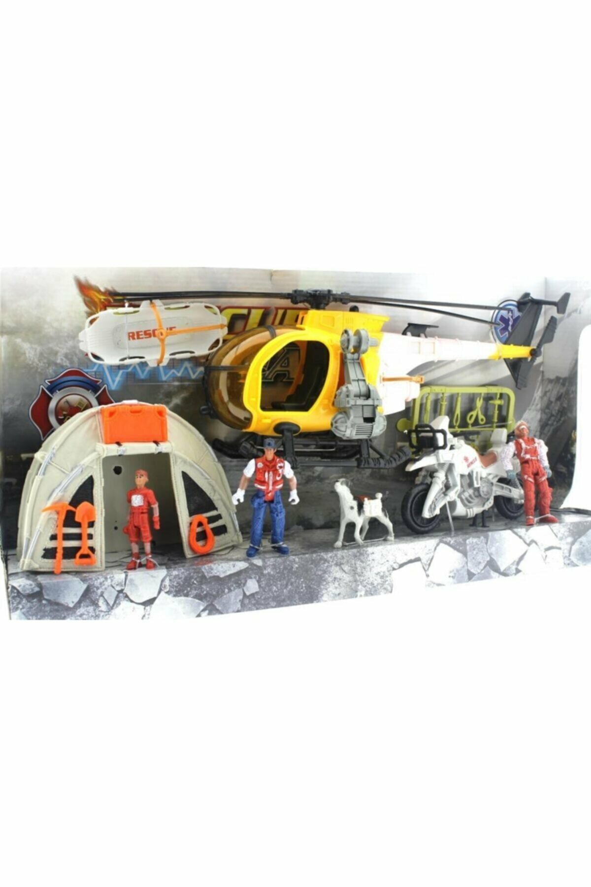 Kutu içerisinde 3 adet insan figürü, köpek, helikopter, motor, çadır, sedye ve medikal aletler bulunmaktadır.