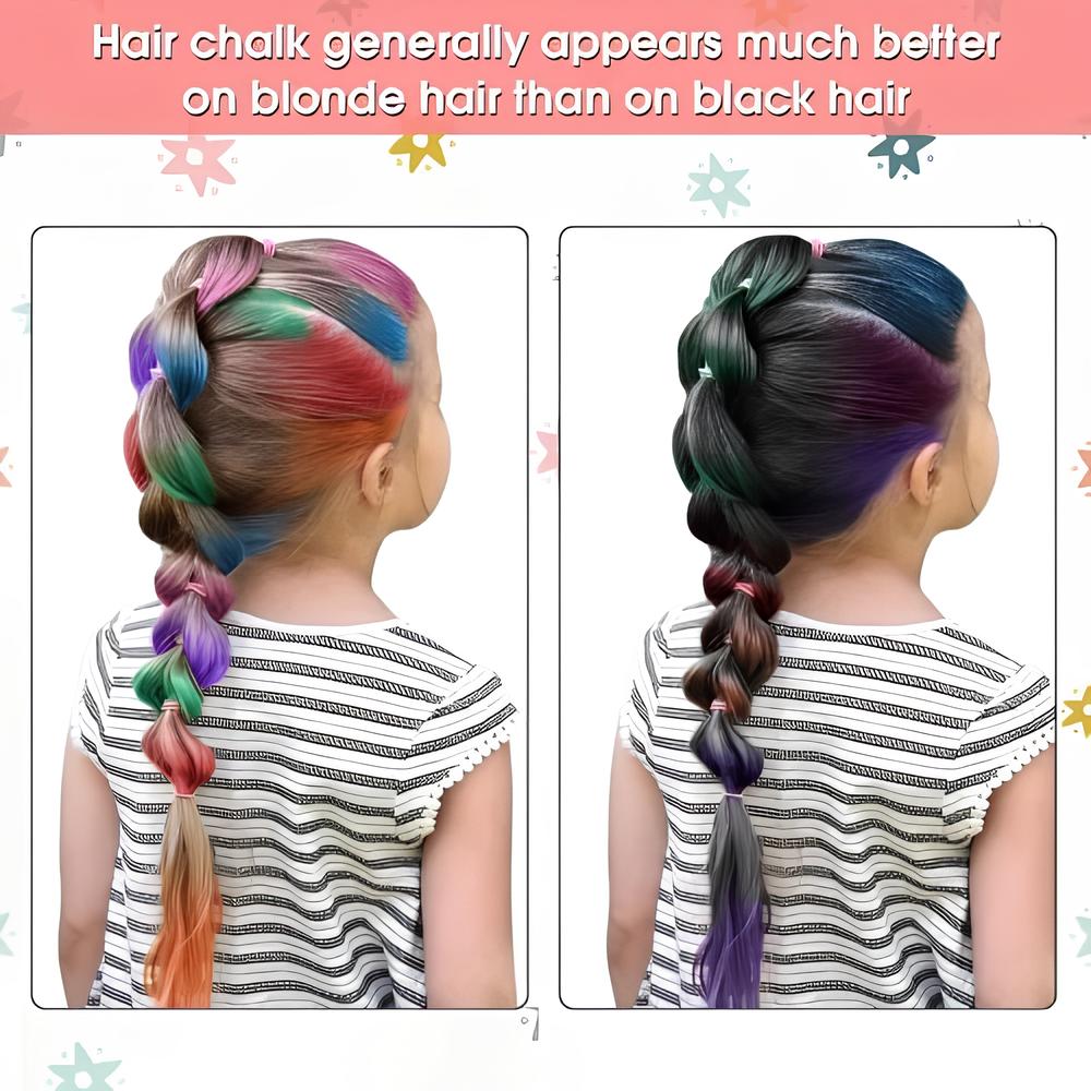 O halde bu saç tebeşiri seti tam size göre! Tebeşir saçınıza zarar vermez ve kolayca yıkanır; tek parti için parlak bir görünüm için ihtiyacınız olan şey budur.