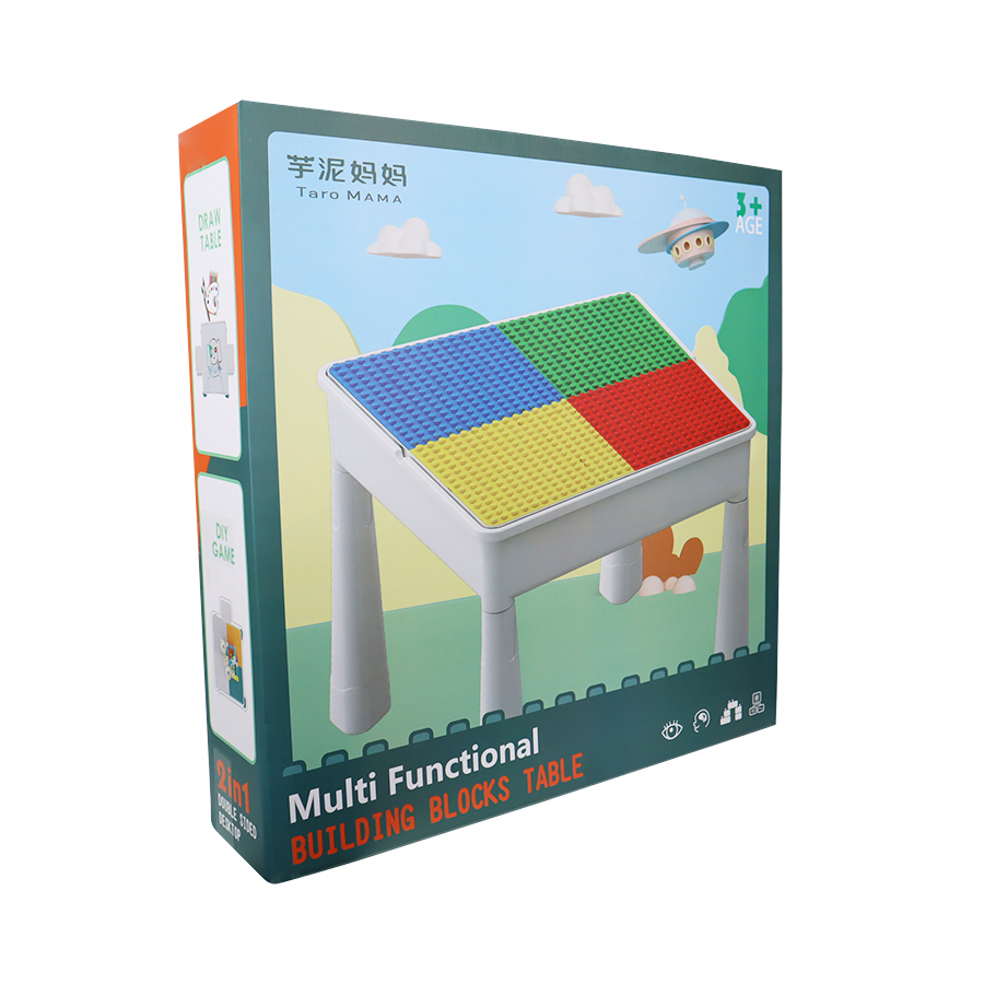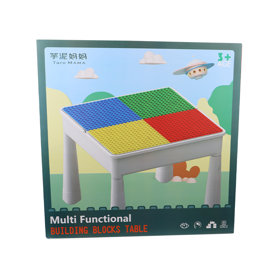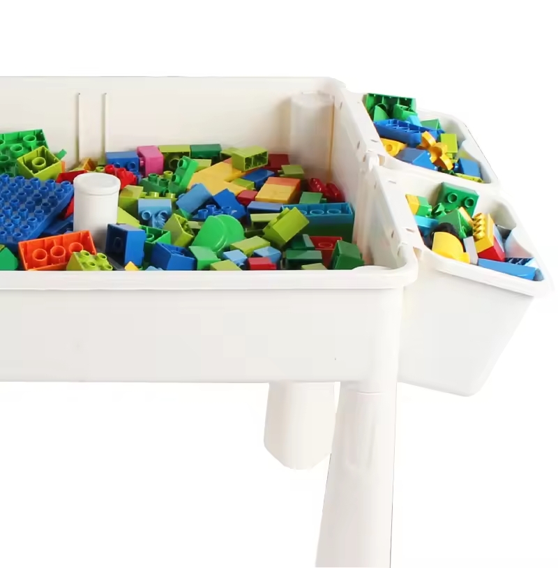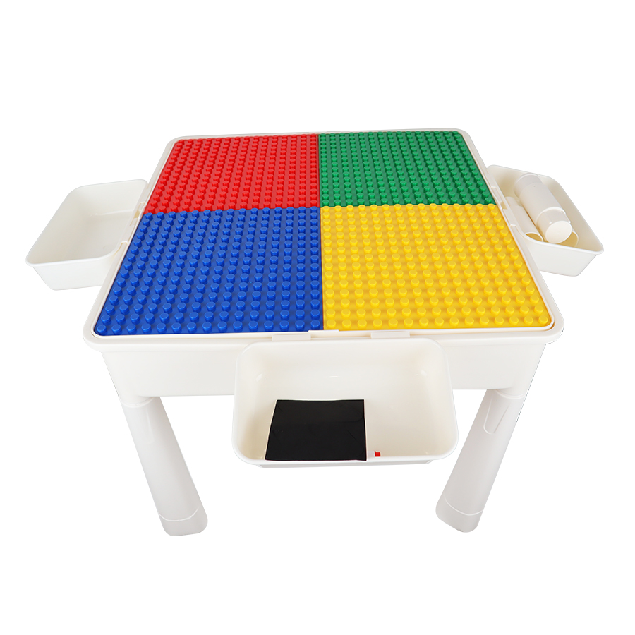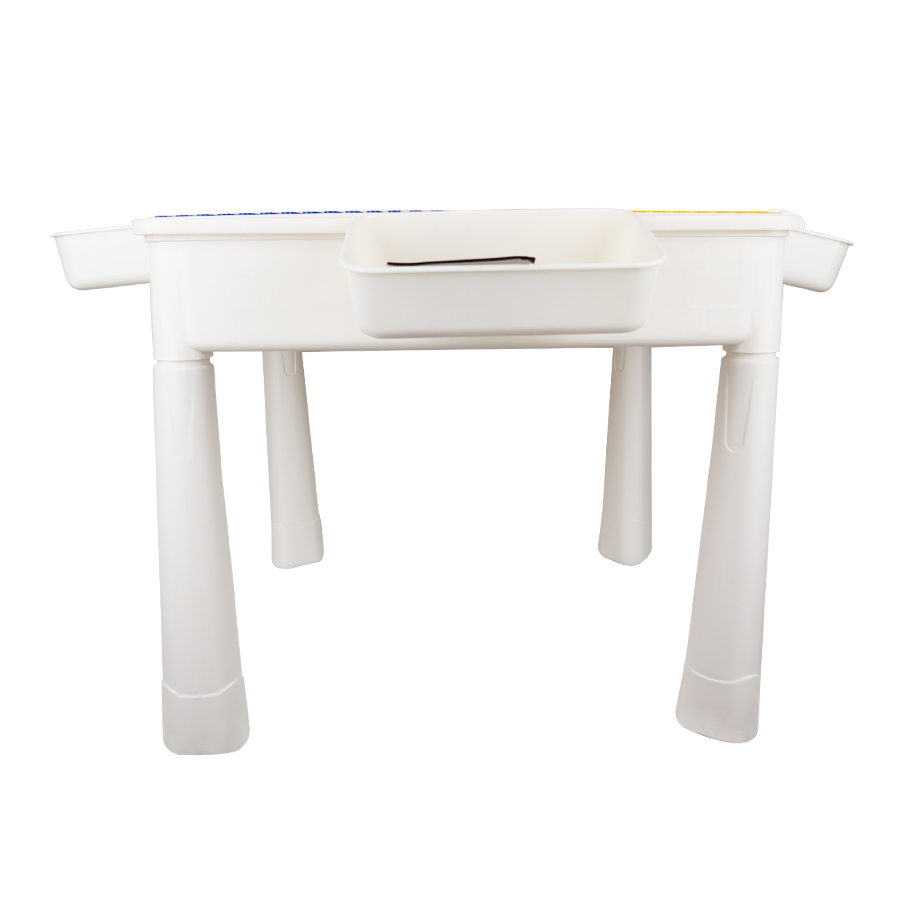 Masanın oyuncakları, inşaat parçalarını, kırtasiye malzemelerini veya diğer küçük eşyaları saklamak için harici cepleri vardır.