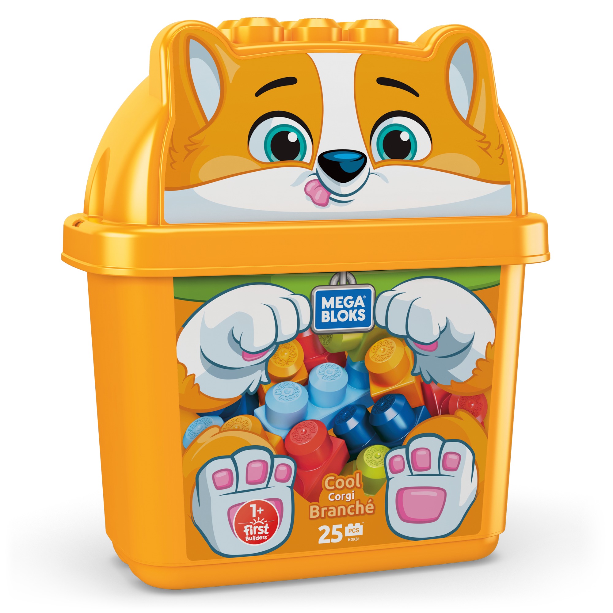 minik eller için tasarlanmış 25 büyük, renkli blok bulunur.