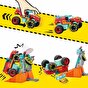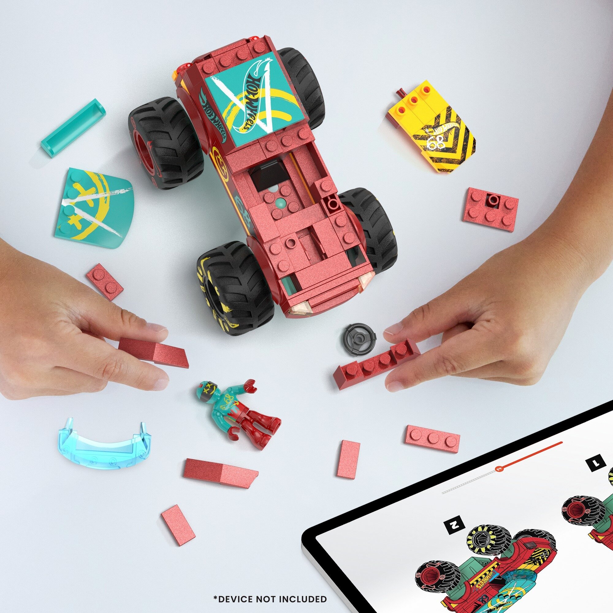 1 rampa, engel ve hedef artı 1 adet parçalarla yapılan poz verilebilir sürücü mikro aksiyon figürü içerir. Parçalar, Mega Hot Wheels ve diğer markaların tüm inşaat setleriyle uyumludur.