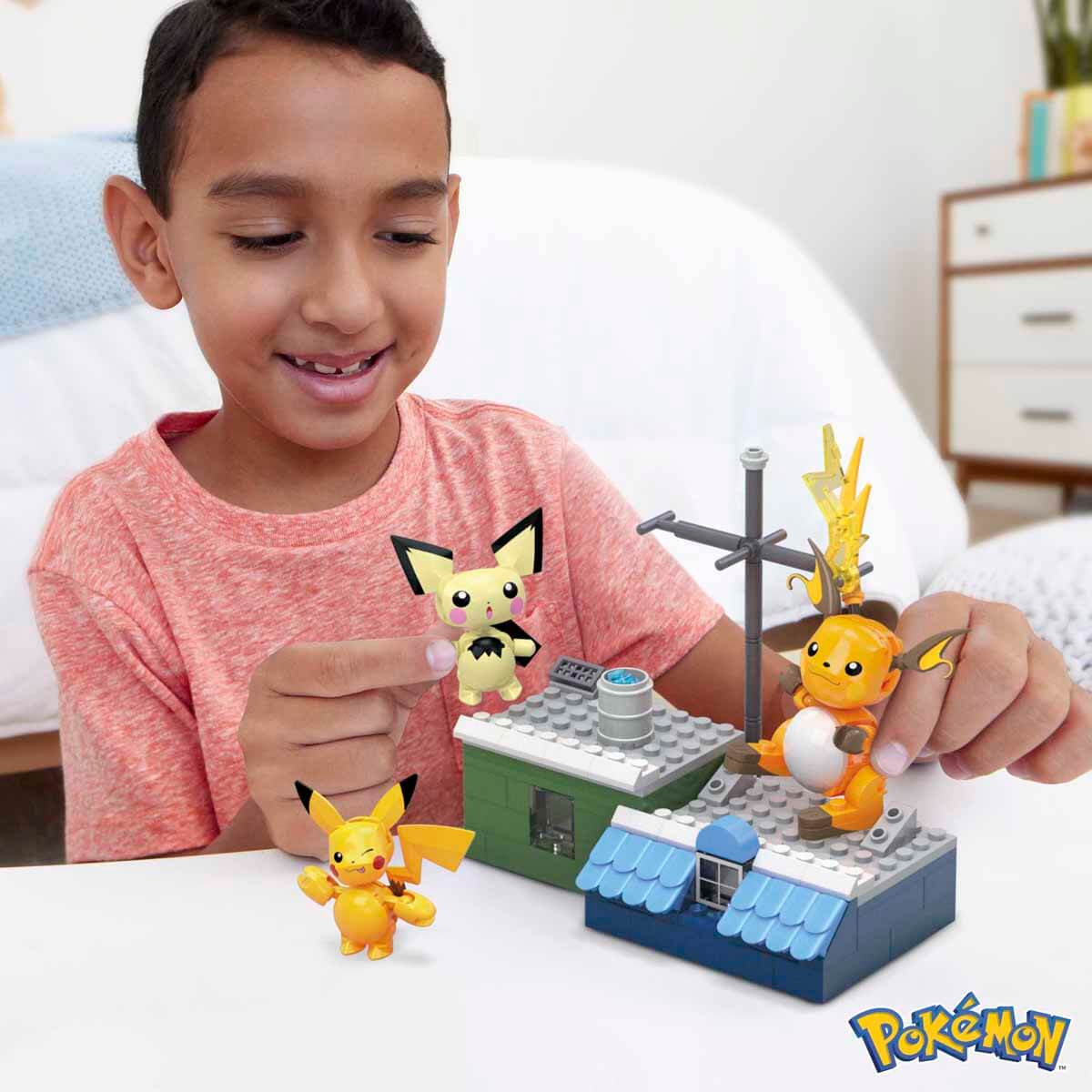Bu yapı setinde çatı üzerinde bulunan Pichu, Pikachu ve Raichu'nun eklemleri bükülebilir. Gerçeğini aratmayan özel bir birleştirme deneyimi için 3 figürün yanı sıra, figürlerin üzerinde durabileceği karşılaşma efekti detaylı çarpıcı bir ortam inşa edin.
