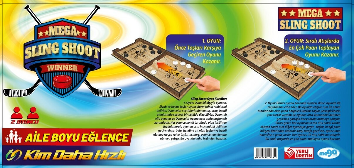 Sling Shoot iki kişiyle oynanan eğlenceli ve stratejik bir kutu oyunudur.