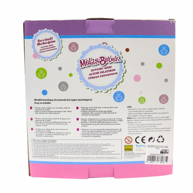 Set içerisinde; 1 adet Melis anlatan bebek, 1 adet lazımlık,