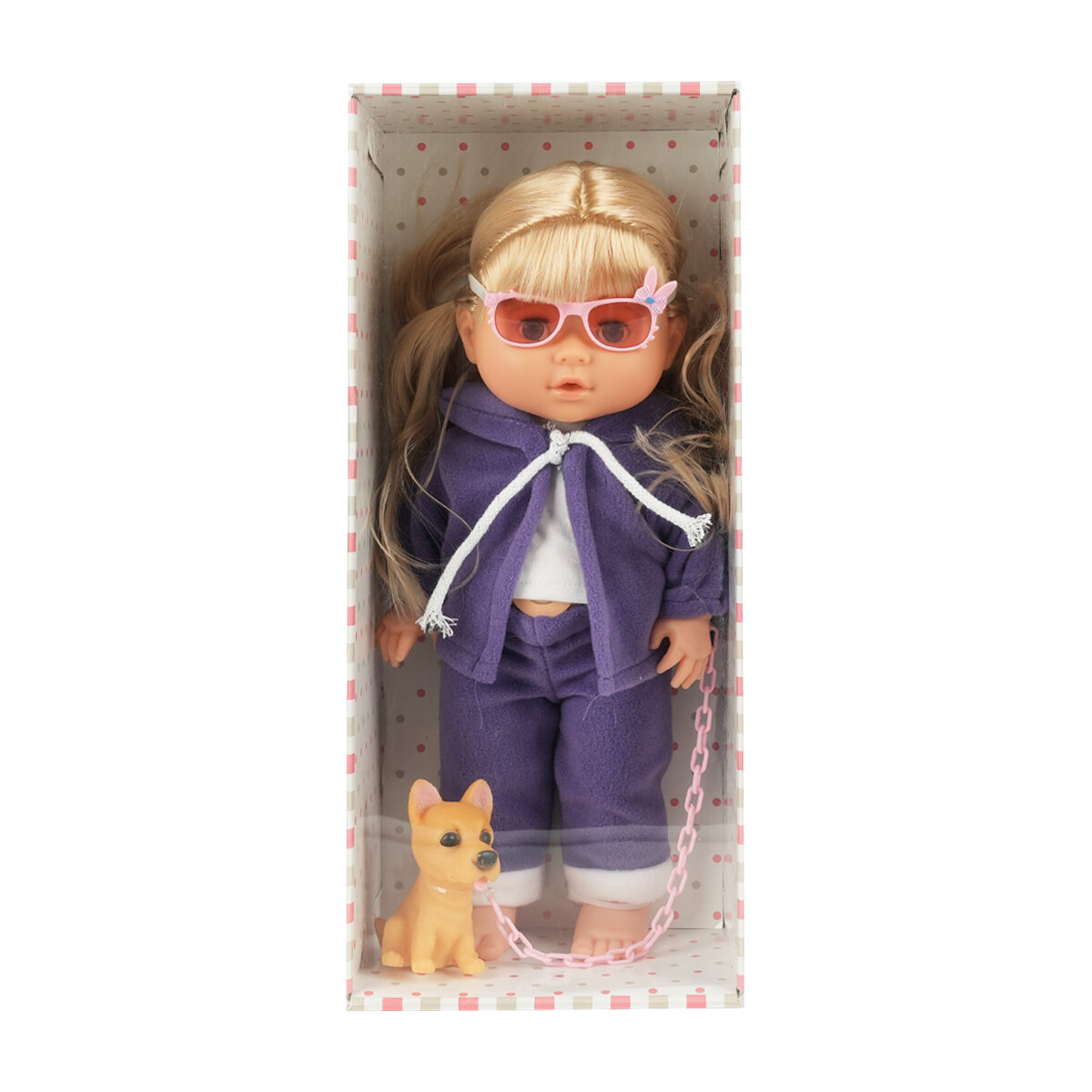 Set İçeriği: 1 adet oyuncak bebek, 1 adet köpek figürü, 1 adet oyuncak zincir.