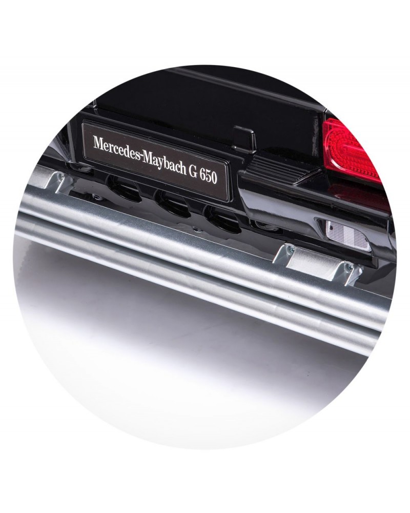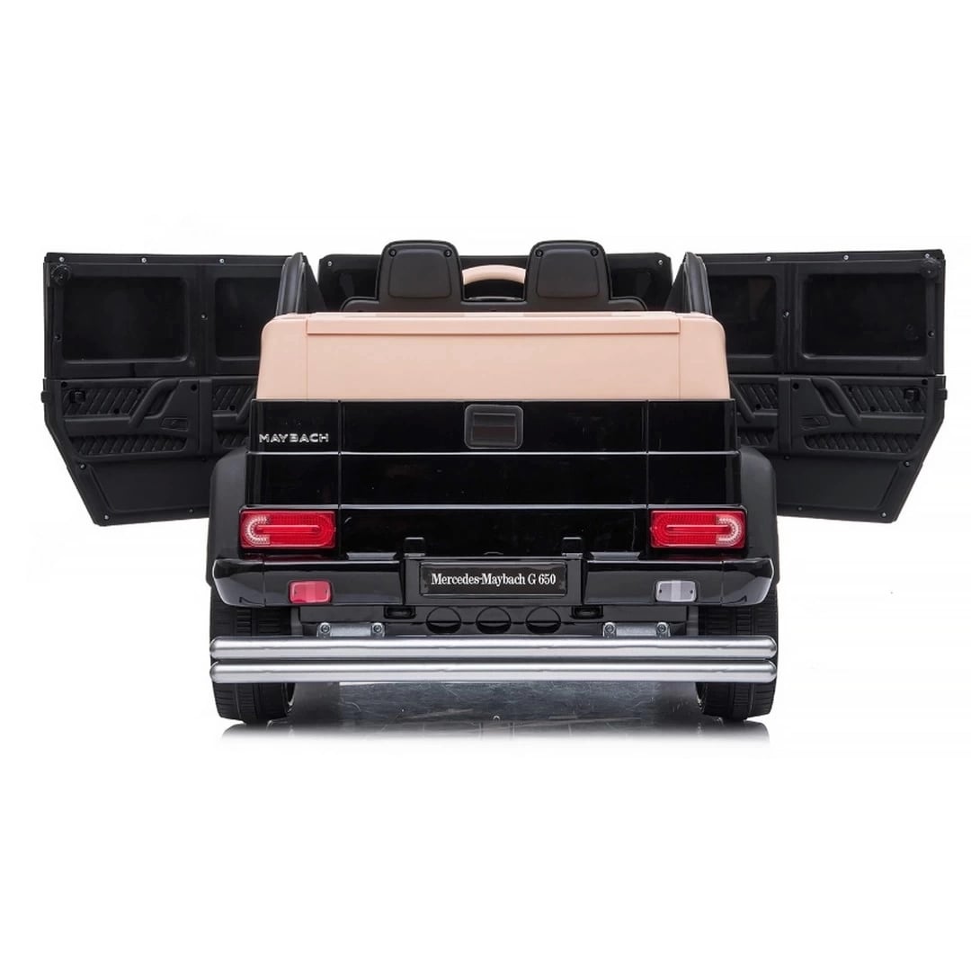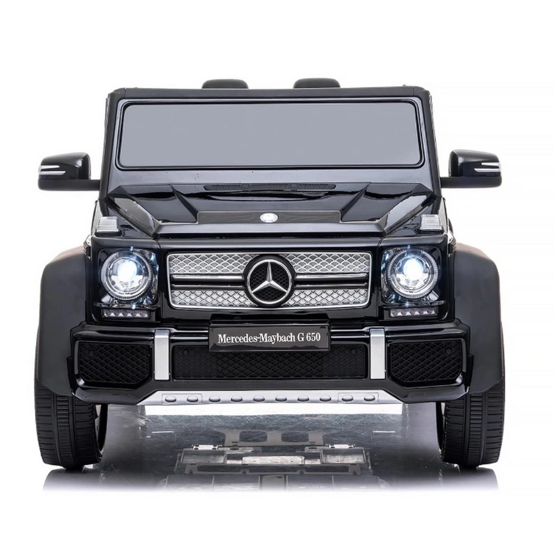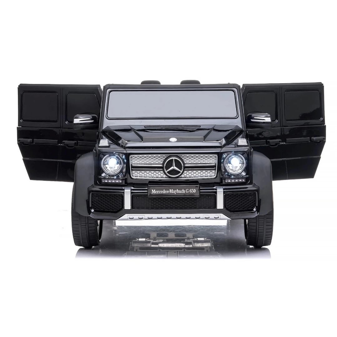 Gerçek Mercedes G 650 Maybach tasarımına sahip bu siyah akülü araba, güçlü motoru ve konforlu koltuğuyla çocuklara lüks sürüş keyfi sunar.