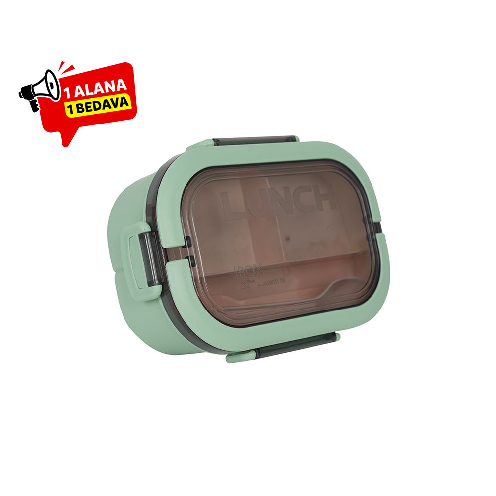 İki katlı beslenme kabının, kilitli mekanizmasını açtıktan sonra farklı boylarda üç bölmesi bulunmaktadır. Ekmek, hamburger, tost vb. gibi öğünleri koyabilirsiniz.