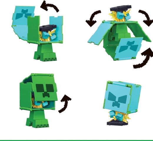 Bu 9 cm'lik dönüşen figürler, kolayca çevrilebiliyor ve bir figürden diğerine dönüşebiliyor. Her figürün büyük kafasındaki panelleri çevirip yerlerine sabitleyerek saniyeler içinde farklı bir Minecraft figürü ortaya çıkarın ve 2'si 1 arada oyun keyfini hiç bıkmadan sürdürün. Üstelik karakter eşleşmeleri koleksiyon oluşturmayı hem çocuklar hem de yetişkinler için eğlenceli hale getirir.