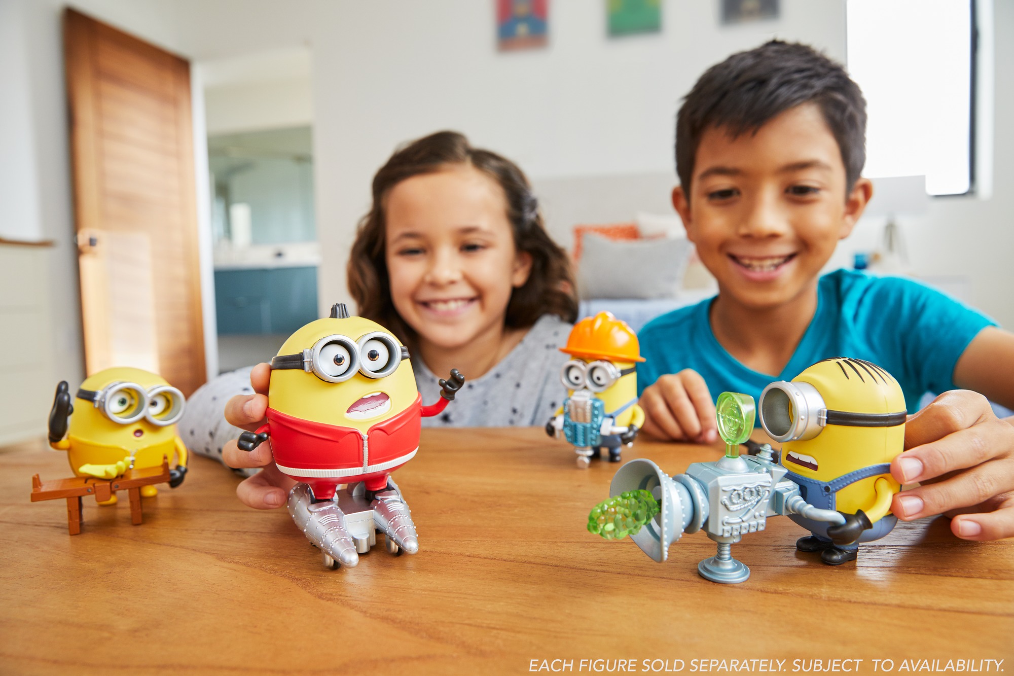 Minyonlar: Gru'nun Yükselişi filminden figürler, 10'dan fazla ses çıkarır.