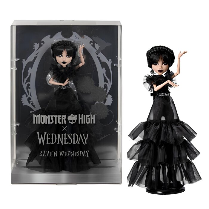 Dizinin ünlü dans sahnesinde karakterin giydiği gotik elbiseden ilham alınarak tasarlanan, koleksiyona uygun Rave'N Wednesday hayranlık uyandıracak kadar etkileyici görünür. Dans için tasarlanan fırfırlı eteği ile Wednesday, gizemli bir şekilde piste çıkmaya hazır!