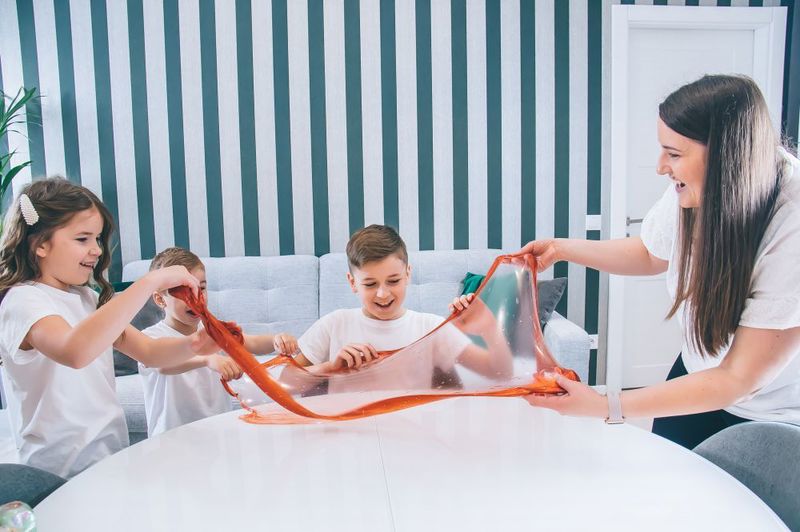 Slime'ın esnekliğini geri kazandırmak için birkaç damla su ekleyin.