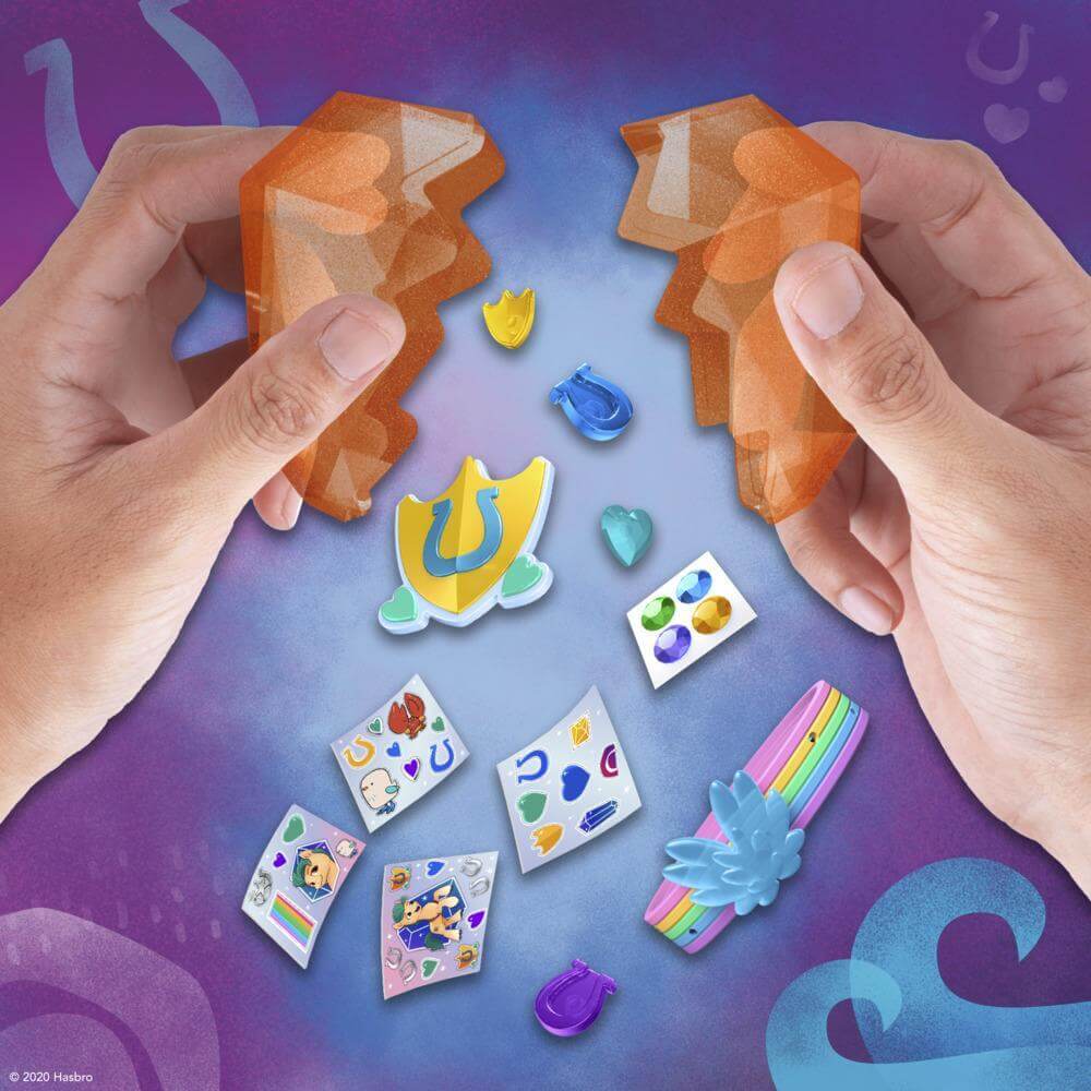 Paketin içinde 7,5 cm boyunda, sarı renkte, kalıptan mavi saçlı Hitch Trailblazer Pony figürü var. Figürün bir yanında şerif rozeti şeklinde Sevimli İşareti yer alıyor. Tekrar kullanılabilen, kristal şeklindeki kutuyu ortasından ikiye ayırarak açın ve içinde saklı parçaları ortaya çıkarın. Kutuya; Pony’yi ve kostüm aksesuarları süslemek için çıkartmalar ve bilezik uçları da dahil. Hitch, sırtına takılabilen sepet aksesuarında sevimli hayvan dostlarını taşıyabiliyor. Ayrıca pakette çocuklar için bir gökkuşağı arkadaşlık bileziği de yer alıyor.