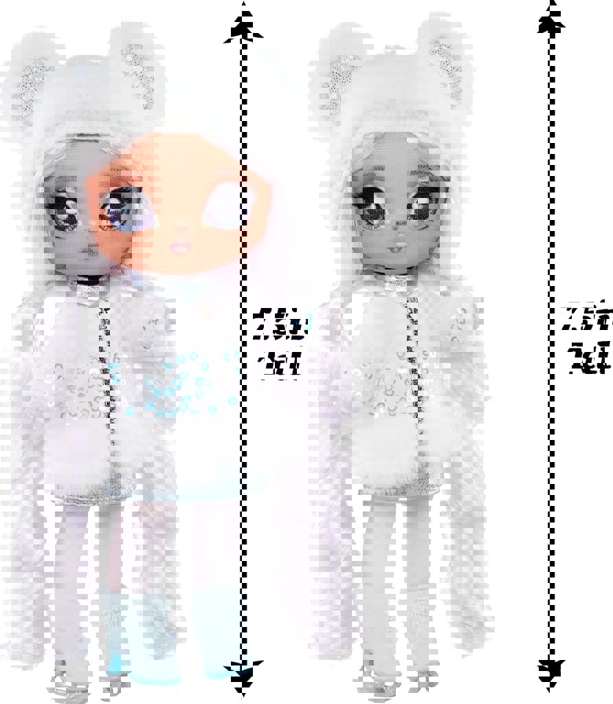 Bailey Frost ilhamını kutup ayısından alıyor. Aynı zamanda muhteşem uzun saçları, detaylı kıyafetleri, baskılı ve işlemeli detayları bulunuyor. 2'si 1 arada eğlence için Bailey Frost Na Na Na Surprise bebeğin ve onunla uyumlu kutup ayısı klipsli ponpon şimdi seninle!