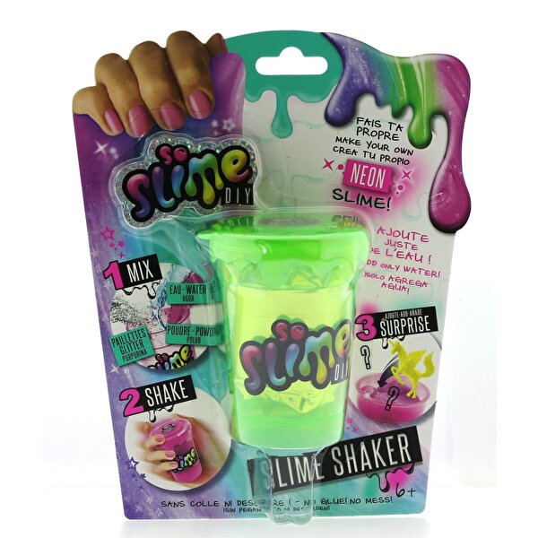 Slime tozunu karıştırma kabına boşaltın, dilerseniz parlaklık ve konfeti ekleyebilirsiniz, kabın üzerinde gösterilen çizgiye kadar su ilave edin, kapağını tutarak 30 saniye çalkalayın.