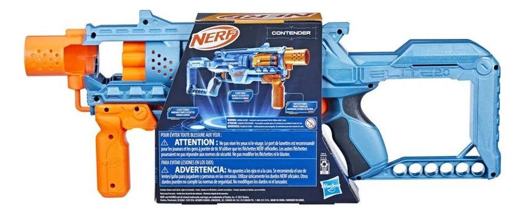Her seferinde 1 atış yapmak için 6 dartlık tamburu, 6 NERF Elite dartı, bir düşme kavraması ve dipçiğin üzerinde yerleşik 6 dart deposu içeren NERF Elite 2.0 Contender blaster ile kazanmaya hazırsınız.
