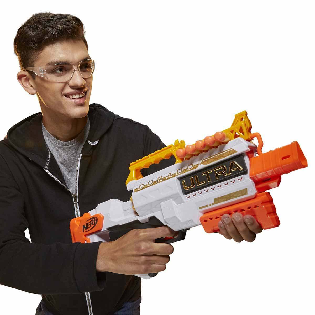 Kaliteli, altın renkli detaylara sahip Nerf Ultra Dorado, 12 adet özel tasarım, altın renkli Nerf Ultra dartları içeriyor.