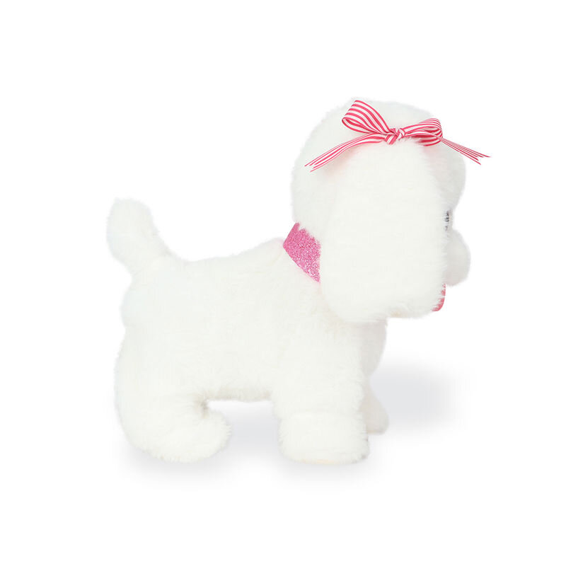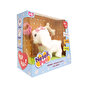 Neşeli Pati tasmasındaki kumandayla yürürken havlıyor ve kuyruğunu sallıyor.