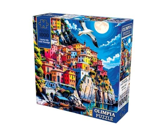 Puzzle severler için tasarlanan Olimpia 1000 parça puzzle, ay ışığı altında renkli tepeleri gösteren etkileyici manzara tasarımıyla hem keyifli hem de dinlendirici bir deneyim sunar. Yüksek kaliteli karton malzemeden üretilen puzzle parçaları kolayca birleşir ve tamamlandığında estetik bir tablo görünümü oluşturur.