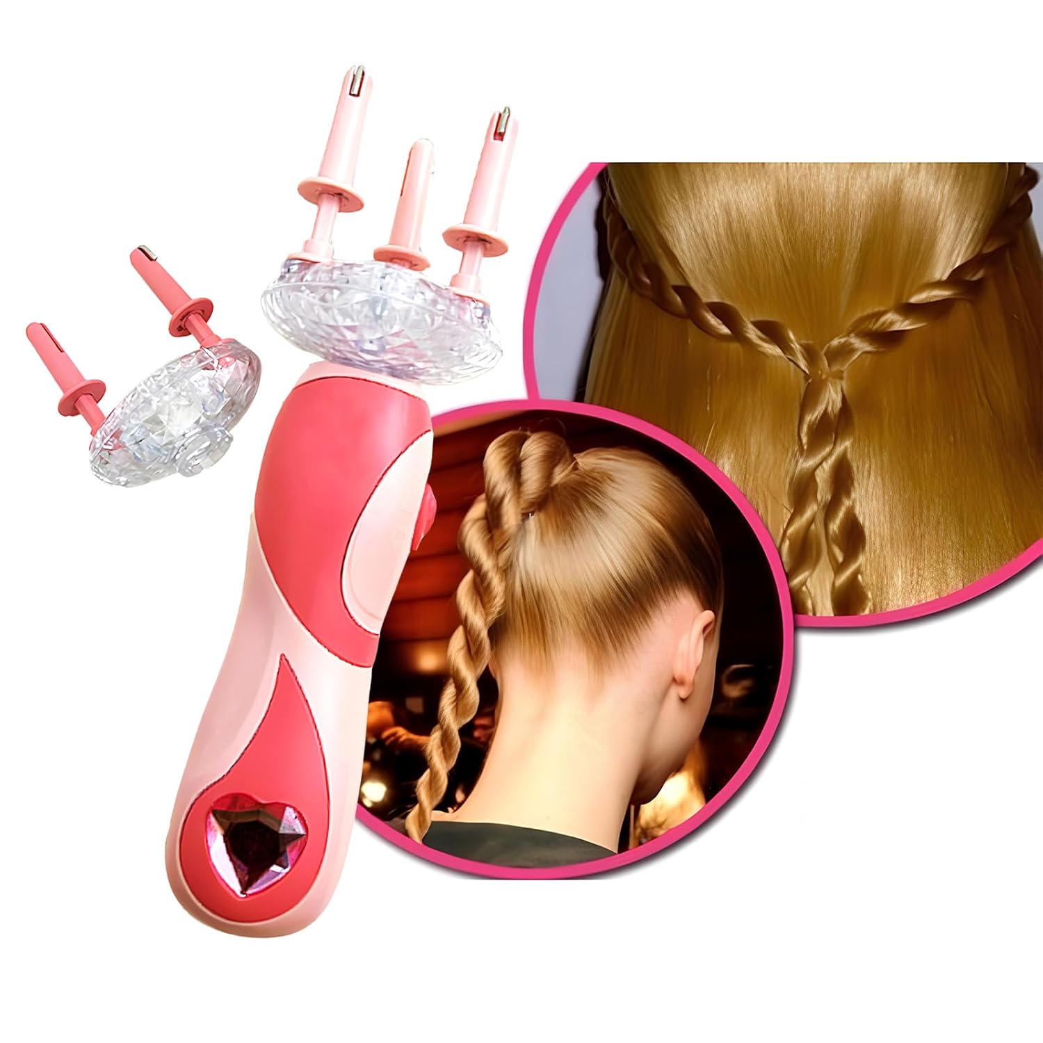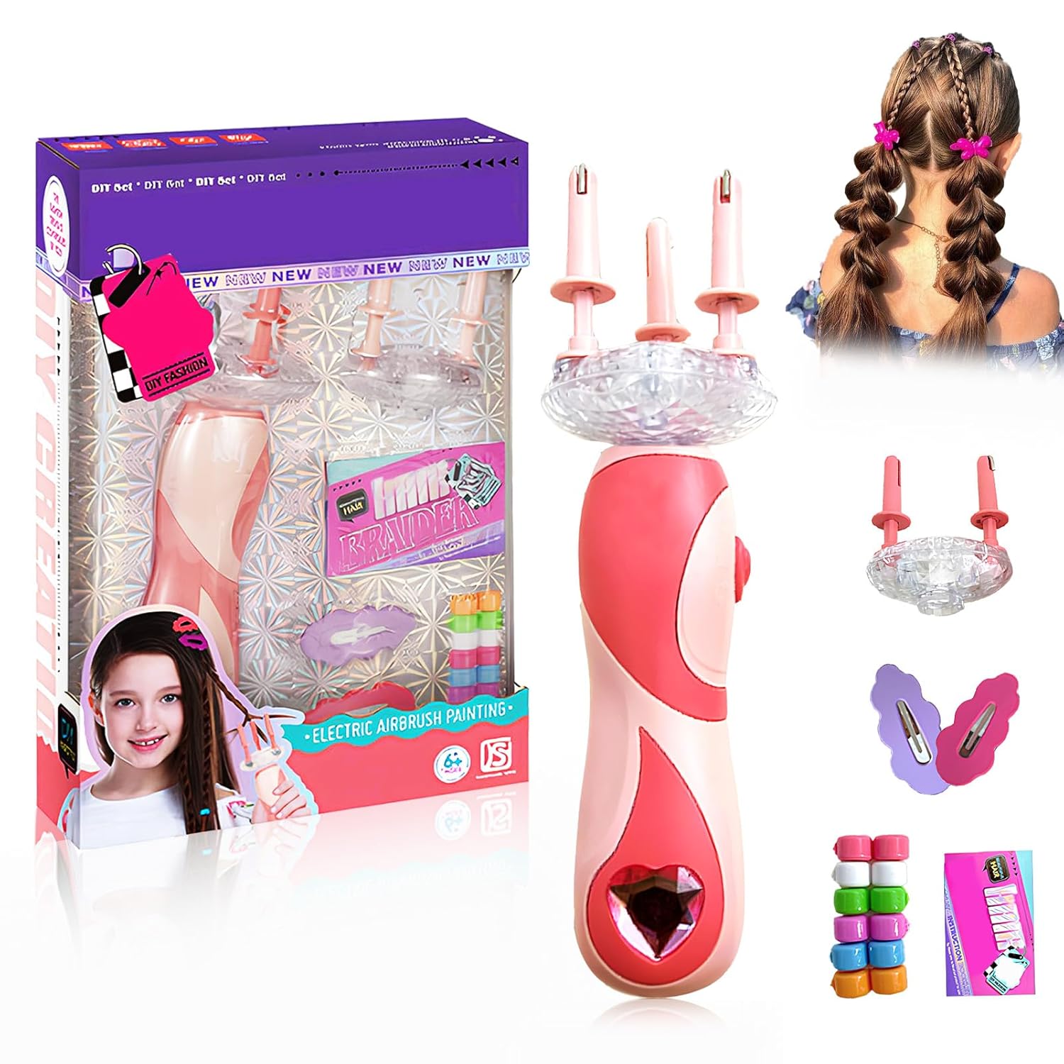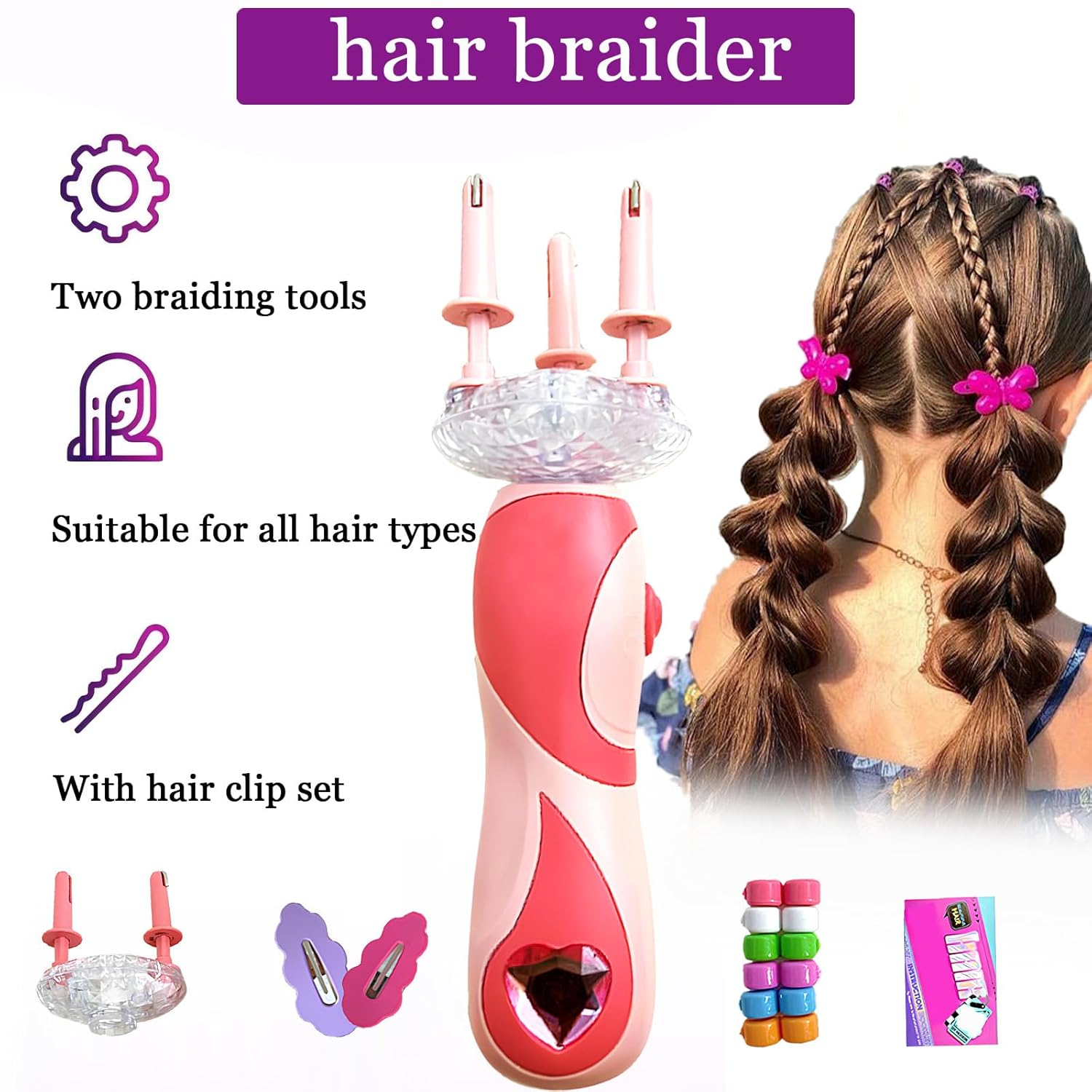 Saç örmek için tam otomatik alet: Saçınızı pembe makinenin yuvarlak deliğinden geçirin, düğmeye basın ve renkli ipek iplik iki saniye içinde saçınızın etrafına otomatik olarak dolanacak, bu da çok güzel ve güzel bir şekilde dekore edilmiş olacaktır.