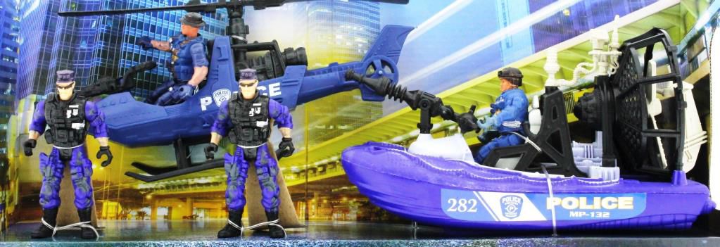 Hovercraftlı Polis Timi Oyun Seti Set içerisinde 4 adet insan figürü, hovercraft bot ve helikopter bulunmaktadır.