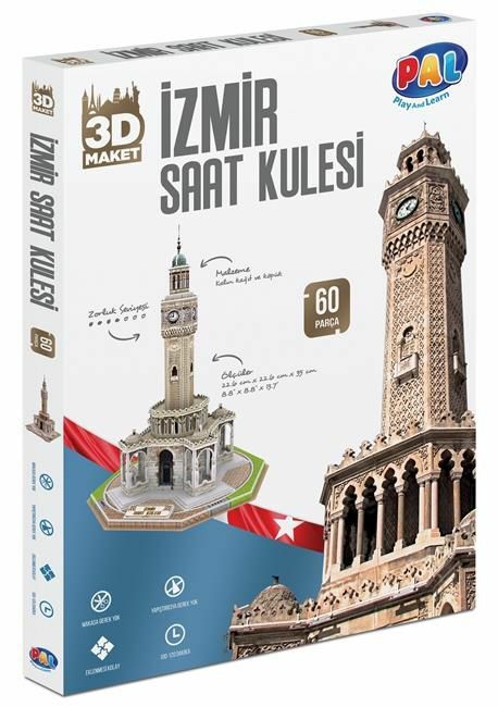 Pal 3D Puzzle 60 Parça İzmir Saat Kulesi ile İzmir’in ikonik saat kulesi evinize geliyor.
