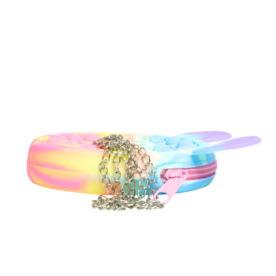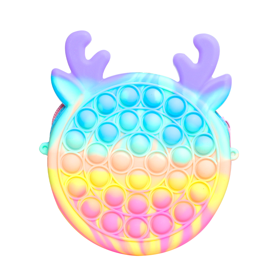 Benzersiz 2'si 1 arada pop it tasarım, aynı zamanda sevimli bir omuz çantası olan bir kıpır kıpır kıpır oyuncaktan oluşur.