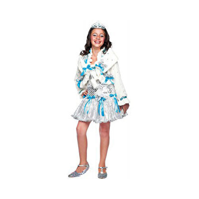 1 adet taç, 1 adet beyaz- açık mavi yumuşak yelek, 1 adet gümüş işlemeli, beyaz-açık mavi elbise, 1 adet beyaz -açık mavi yumuşak şal bulunur.