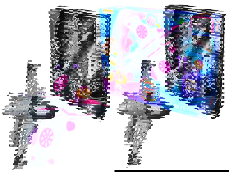 Pembe PAW Patrol: The Mighty Movie üniformasını, yarı saydam bölümleri ve havalı kaskını giymiş olarak Skye aksiyon figürünüzü oyuncak uçağının kokpitine klipsleyerek Skye'nin vücudundaki ve jet uçağındaki birçok alanı aydınlatın; patilerinin parıldamasını izleyin, ve müzik ve ses efektlerini dinleyin.