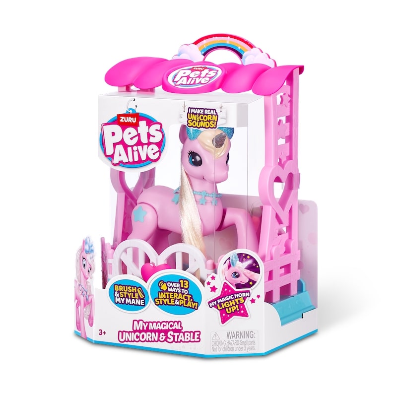 Paketten çıkan pespembe sevimli unicorn’u paketteki havuçla beslemek çok eğlenceli. Unicorn havuca bayılıyor ve afiyetle yiyor. 10’dan fazla ses ve tepki sayesinde onunla oynamak çok eğlenceli. Tek boynuzlu at seslerini çıkardığını duymak için burnuna vurmanız yeterli.