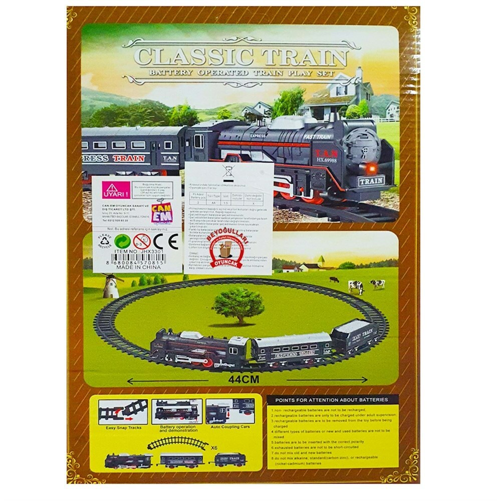 Kutu İçeriği:1 adet tren 2 adet vagon 6 adet ray.