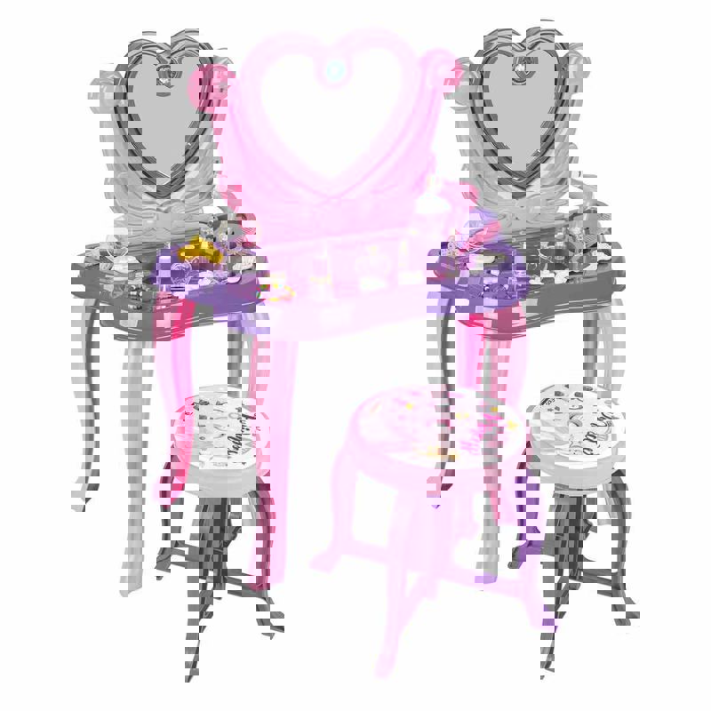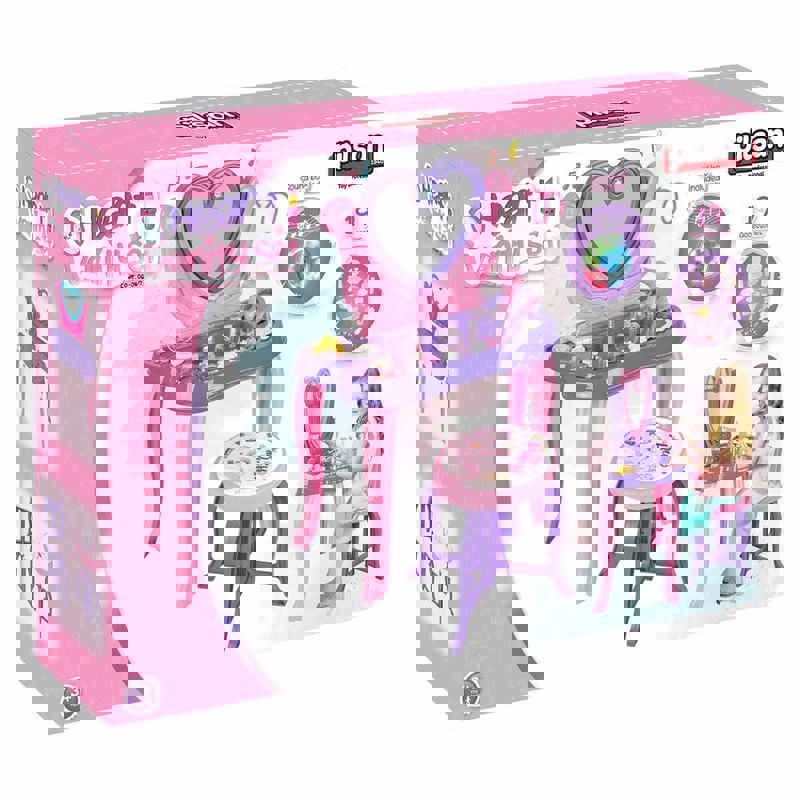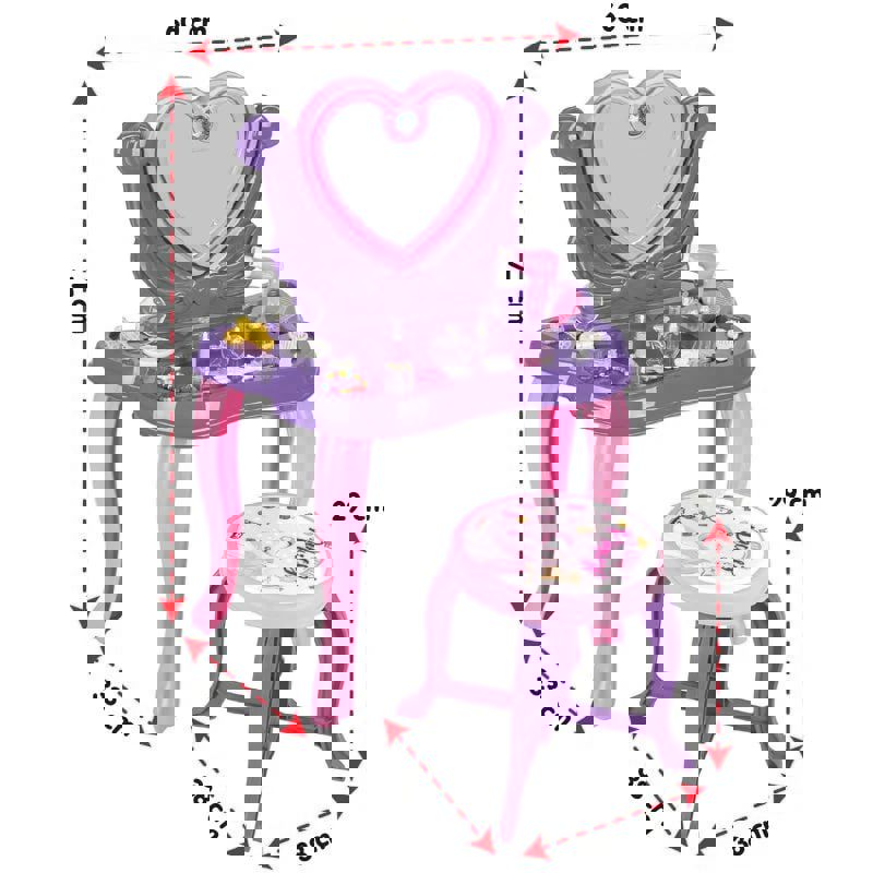Bakıma ve güzelliğe dair ihtiyaç duyabileceğin her şey Kalp Makyaj Masası ile birlikte gelir. Makyaj masasındaki gerçekçi bakım ve makyaj oyuncakları ile saçlarını tarayabilir, arkadaşlarınla buluşmak için süslenebilirsin!