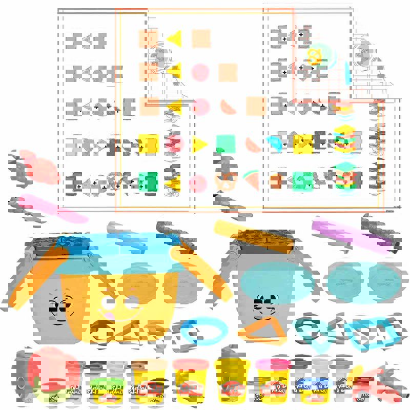 12 başlangıç aleti, 6 Play-Doh rengi ve saklama kutusu olarak kullanılabilecek bir oyuncak piknik sepetiyle birlikte sunulur. Kareler, daireler, üçgenler gibi temel şekilleri keşfeden çocuklar, hayal güçlerini kullanarak bu şekillerle kat kat Play-Doh sandviçleri yapabilir. Oyun matının piknik örtüsü tarafını kullanarak atıştırmalıklar ve böceklerle hayali piknikte olduğunuzu hayal edin veya diğer tarafını çevirerek çocuklara yönelik eğlenceli şekil sıraya dizme oyunları oynayın.